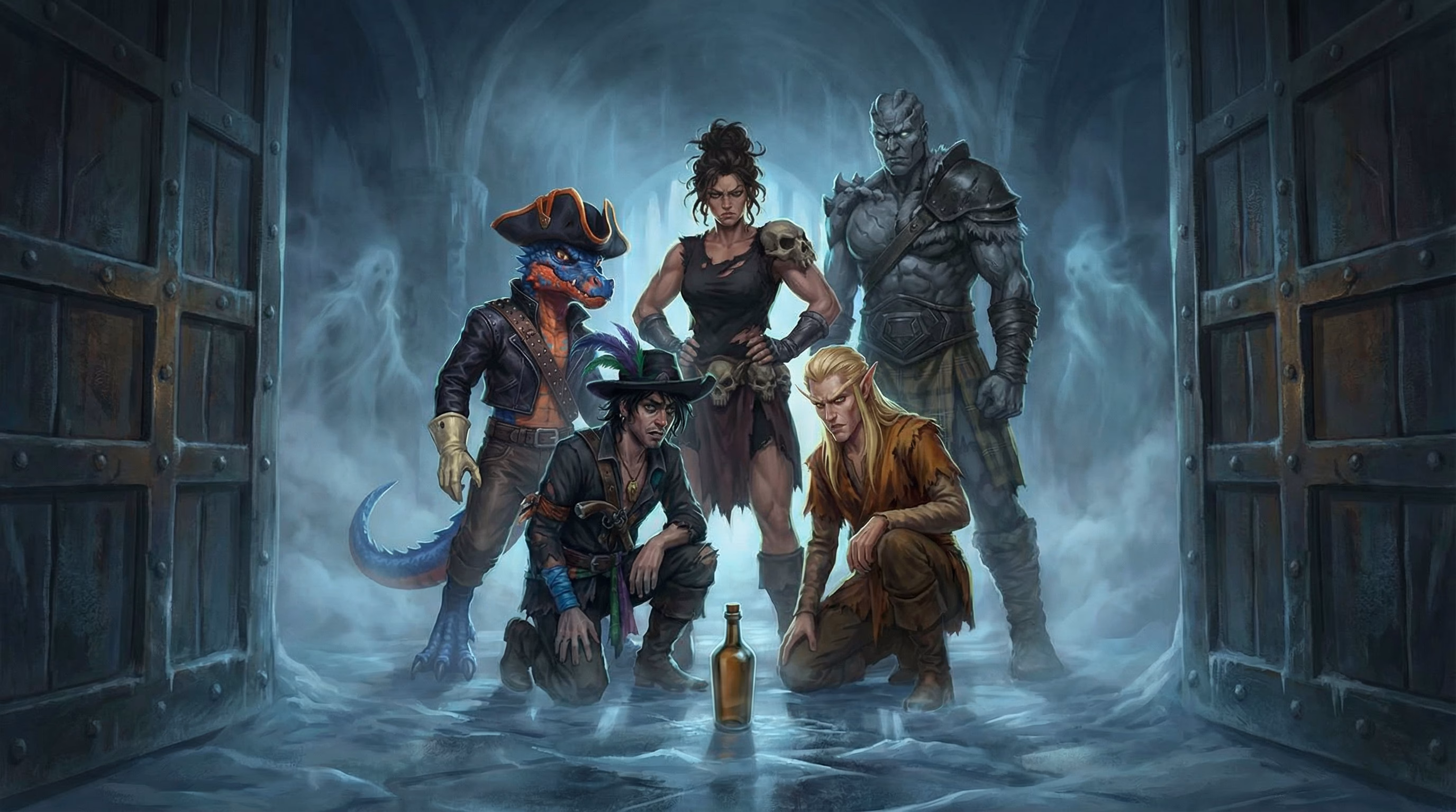 They continue exploring and Scrabble’s flute gets painfully cold and he hears laughter again. Scrabble asks out loud “Spirit, are you trying to get our attention?” The room becomes full of dense fog where the members can’t even see their hands in front of their faces. It appears that ghosts attack. Once the fighting is done, it turns out it was ice mephits. Some of the crew harvest the corpses for parts.